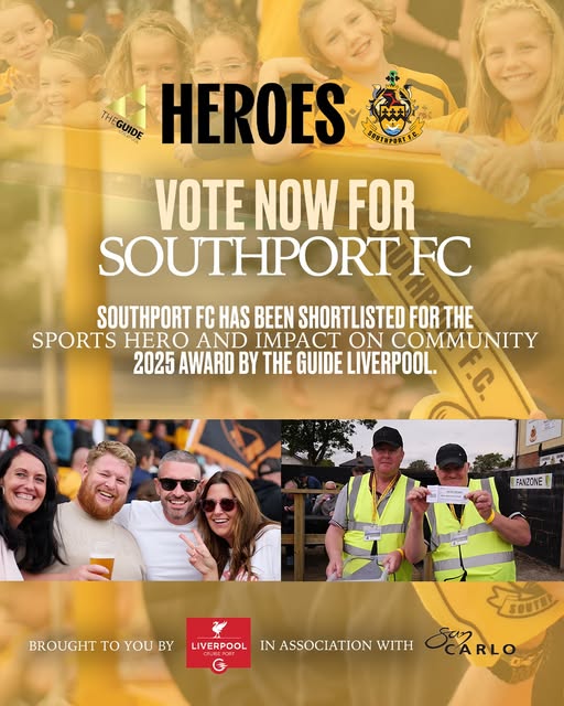 Southport FC is proud to announce that it has been shortlisted by @theguideliverpool for the Sports hero and impact on community award 2025.